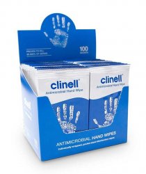• Clinell Antibacterial Hand Wipes Individually Wrapped Box 100 Clinell Antibacterial Hand Wipes Individually Wrapped Box 100